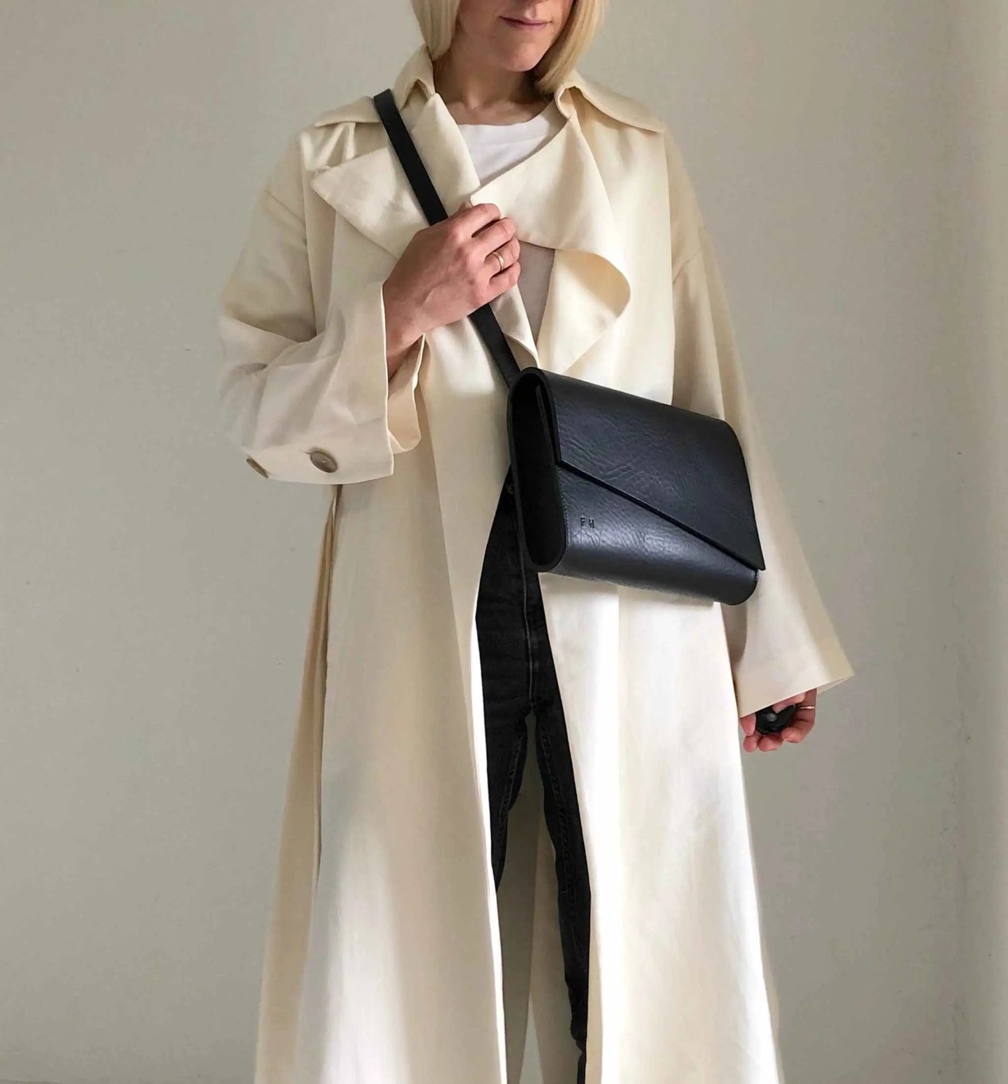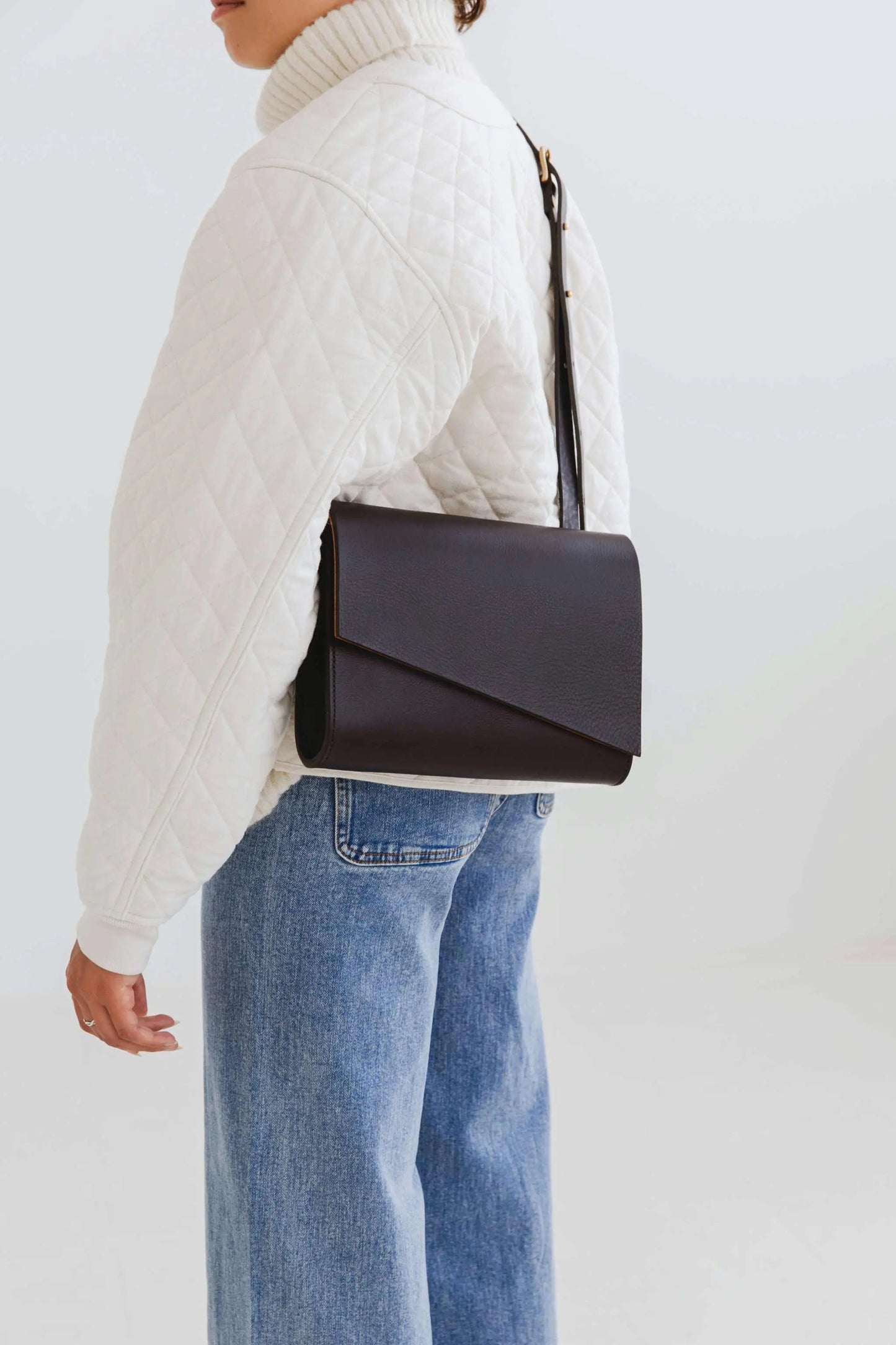 Our leather artisan Becky crafts every cross body leather bag by hand, stitch by stitch. Exceptional quality coupled with clean minimalist styling.