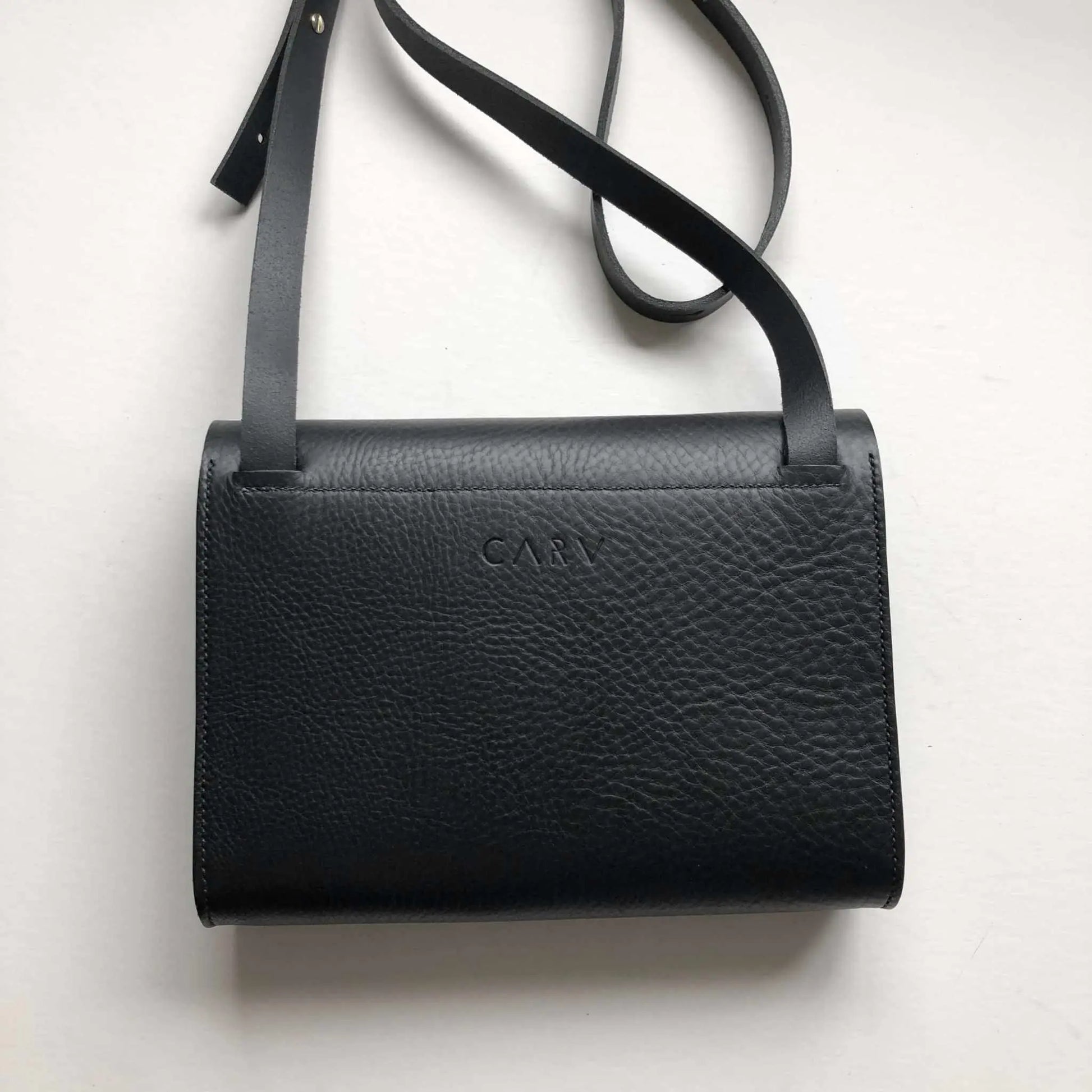 CARV custom service - Love this black leather crossbody bag but want it a little different (colour, fabric, size, strap length, pockets etc)? Just contact CARV and Becky will be happy to help design your perfect leather crossbody bag.