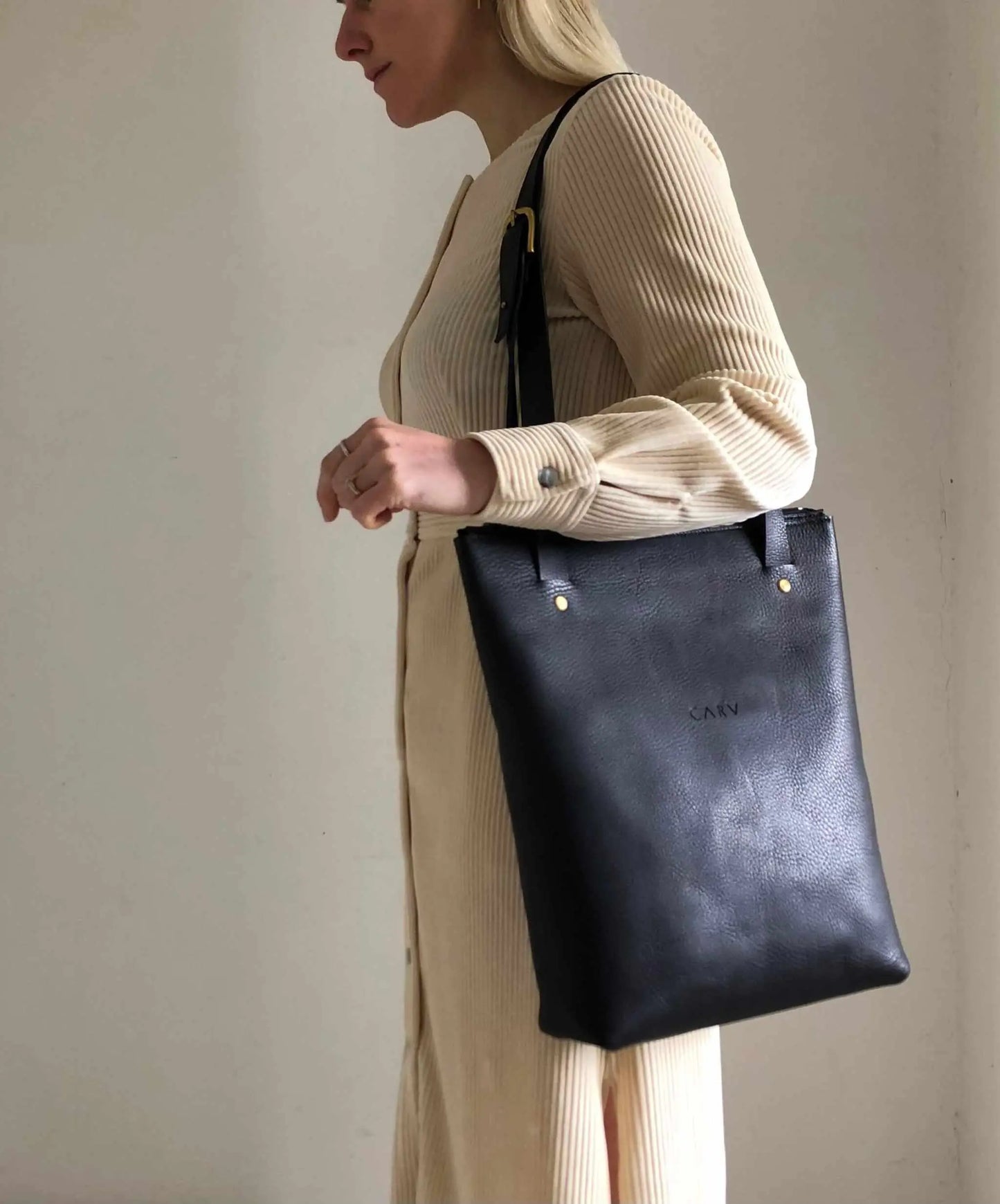 When it comes to quality, nothing beats the precision of English craftsmanship. Our black leather tote bag is meticulously handcrafted by a skilled artisan who ensure every stitch is perfect. The attention to detail is evident in the bag's durability and finish, making it a lasting investment. The use of high-quality leather ensures that your bag withstands the test of time while maintaining its pristine look.