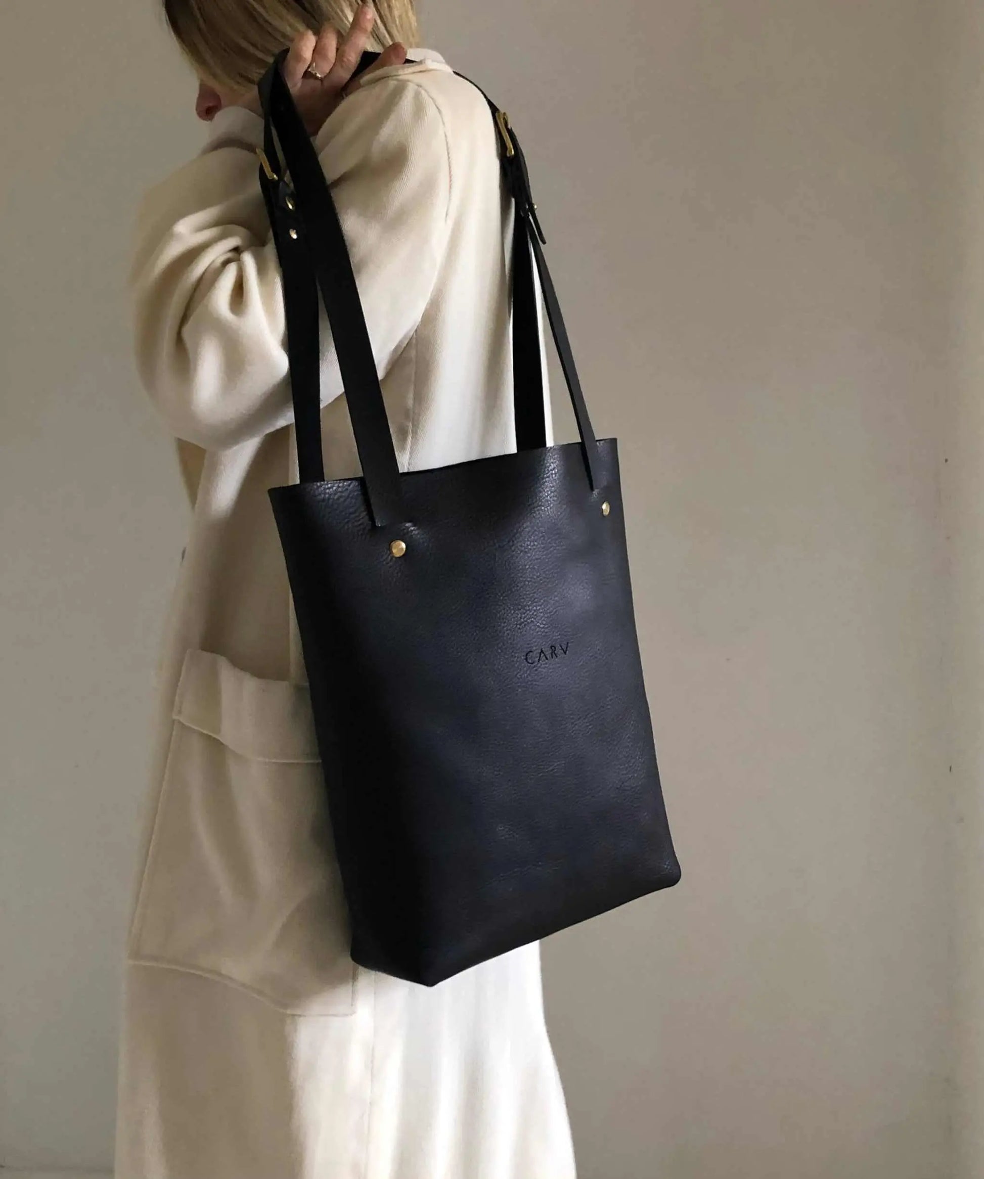 CARV custom service - Love this leather shopper but want it a little different (colour, fabric, size, strap length, pockets etc)? Just contact CARV and Becky will be happy to help design your perfect British made leather tote shopper bag.