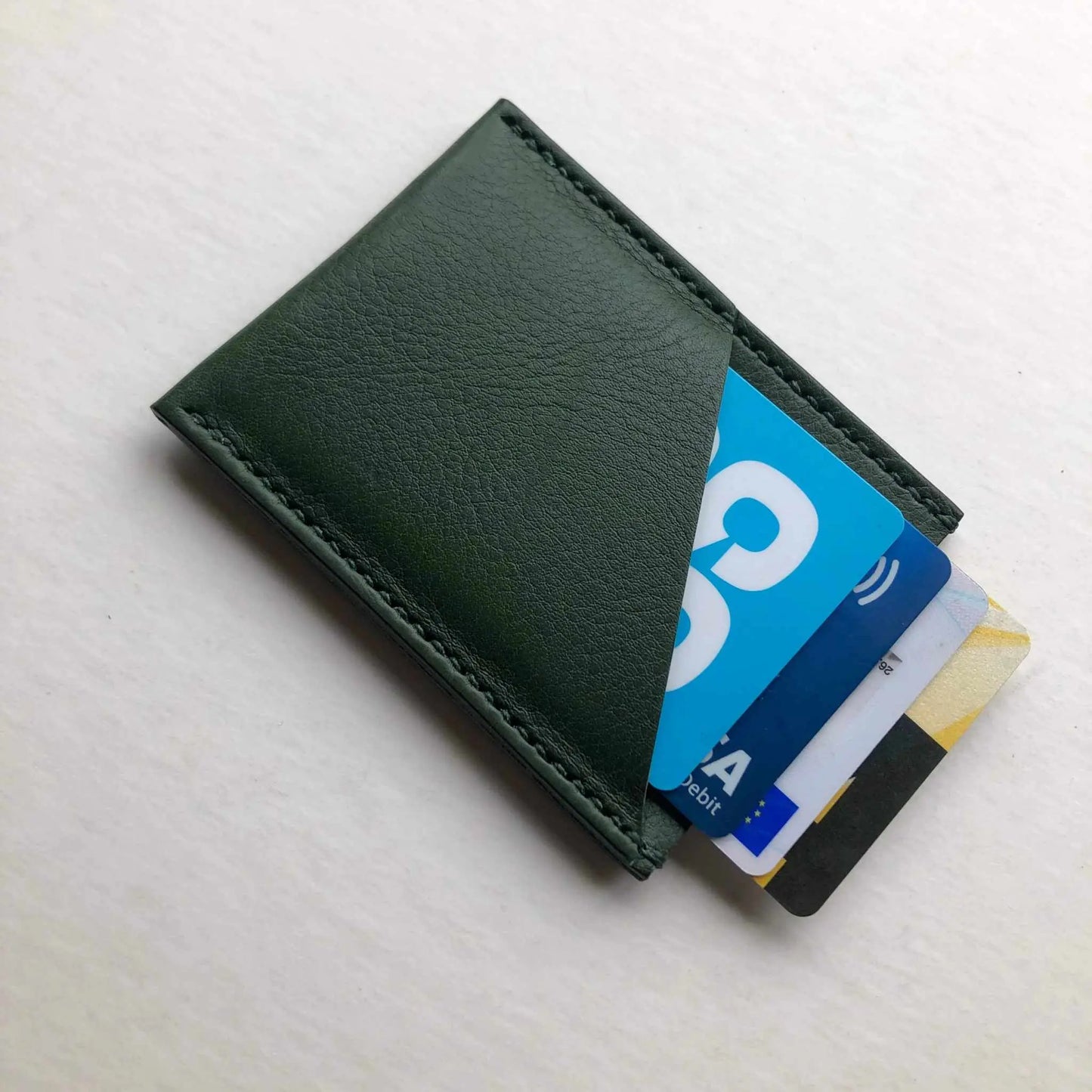This leather sleeve accommodates up to four essential cards with ease. For added convenience, fold your notes neatly behind—ensuring all you need is carried in style. Offered in three elegant tones—Green, Taupe, and the timeless Black—the Pioneer Leather Card Holder is perfect for lovers of lasting quality, minimalist aesthetics, and Earth-conscious luxury.