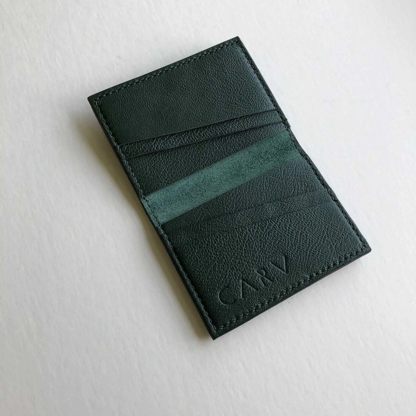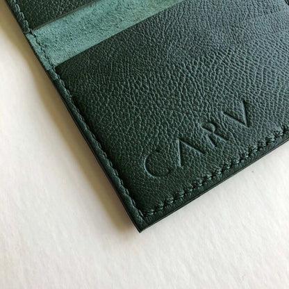 Discover the personalised green leather card wallet by CARV—Handcrafted in the UK using premium vegetable-tanned leather, our green leather card wallet embodies a commitment to quality and longevity, developing a unique patina that only improves with age.
