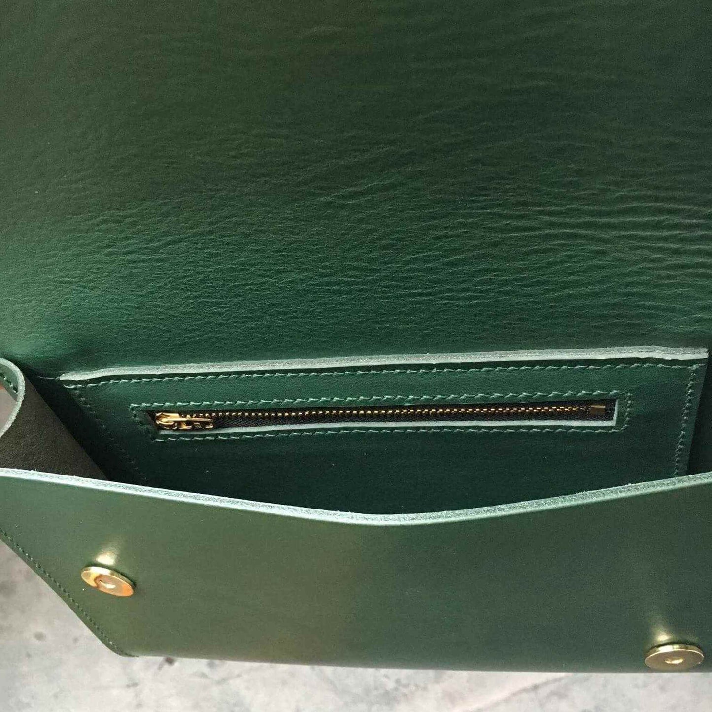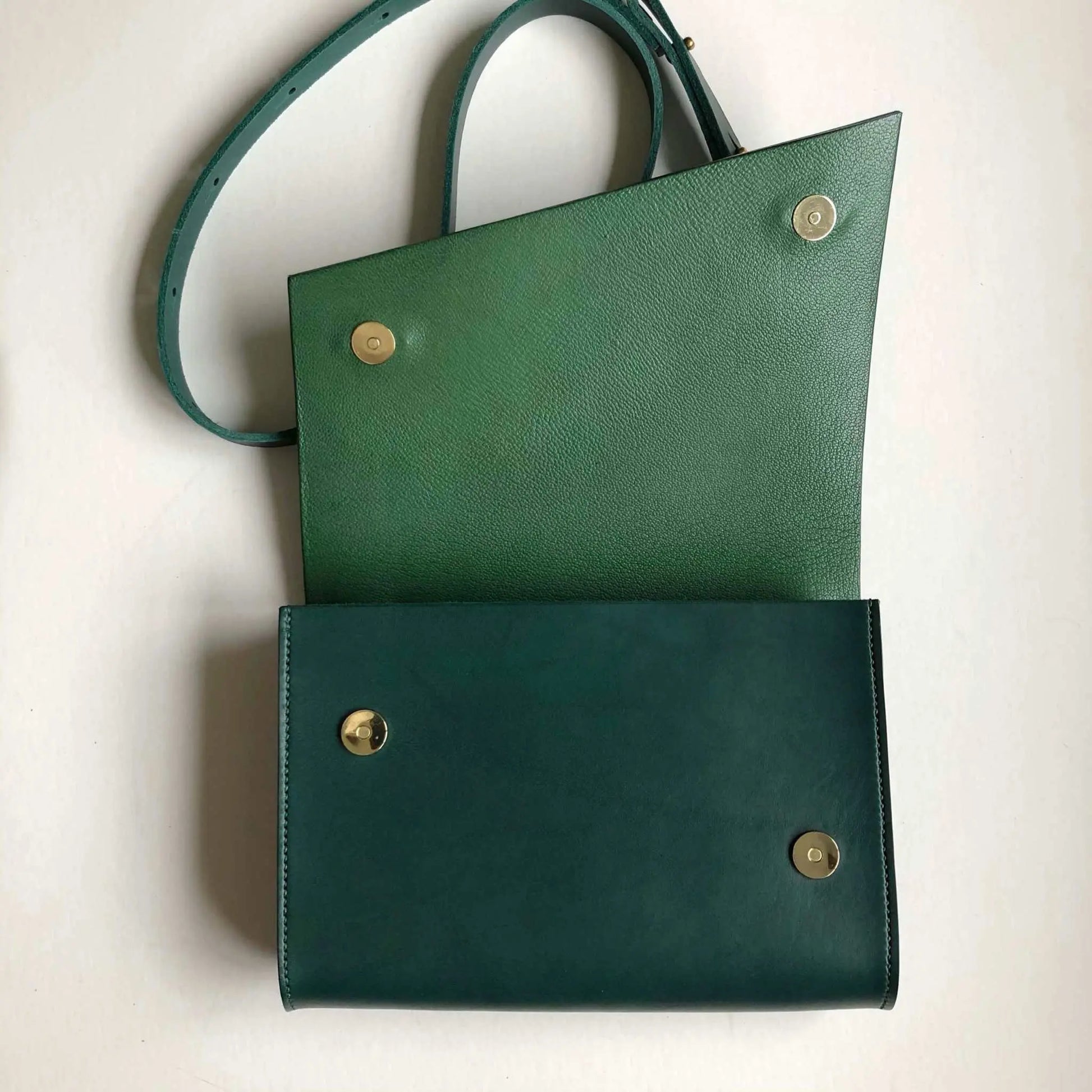 Green leather handbag with smooth green leather outer with a green leather lining.