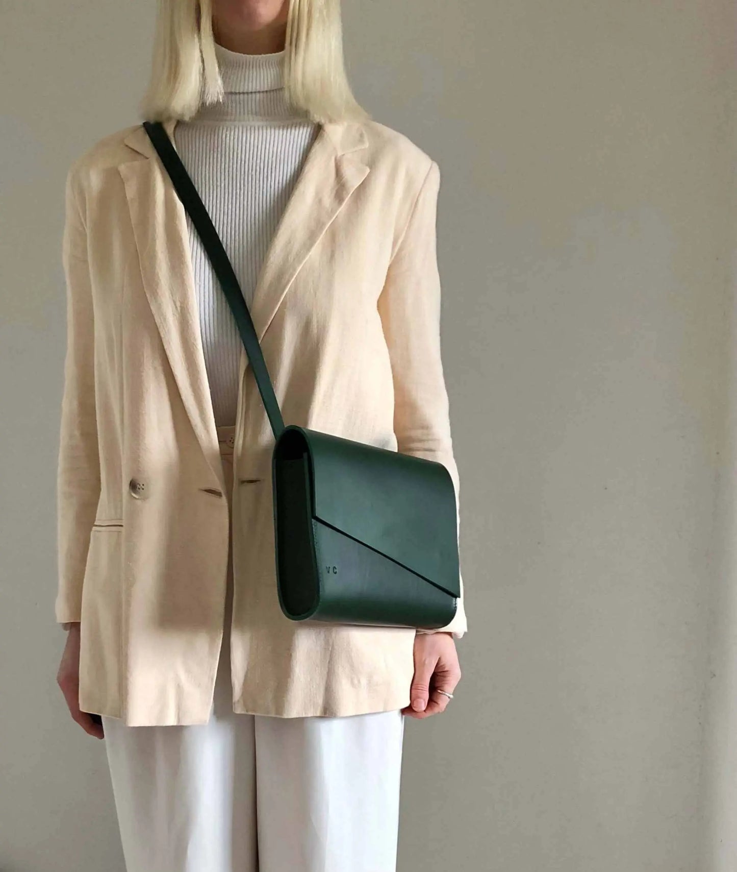 CARV custom service - Love this green leather crossbody bag but want it a little different (colour, fabric, size, strap length, pockets etc)? Just contact CARV and Becky will be happy to help design your perfect leather crossbody bag.