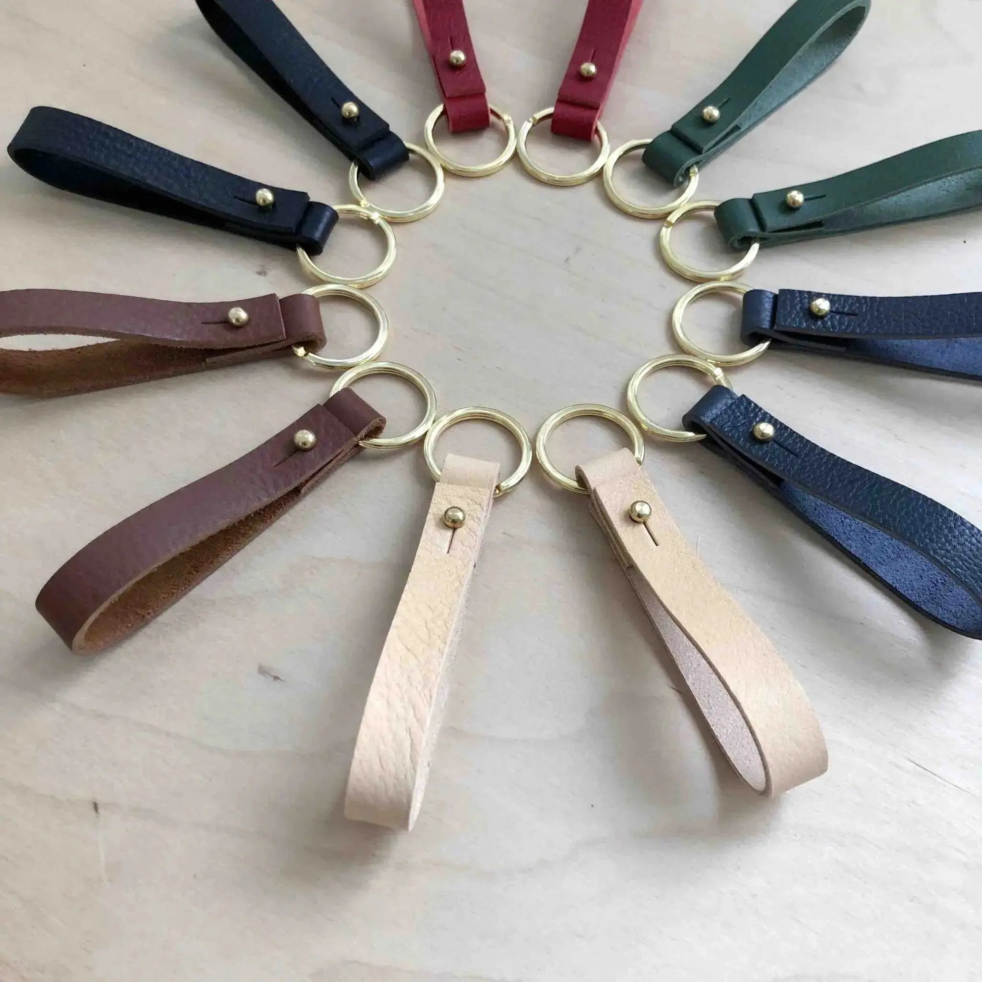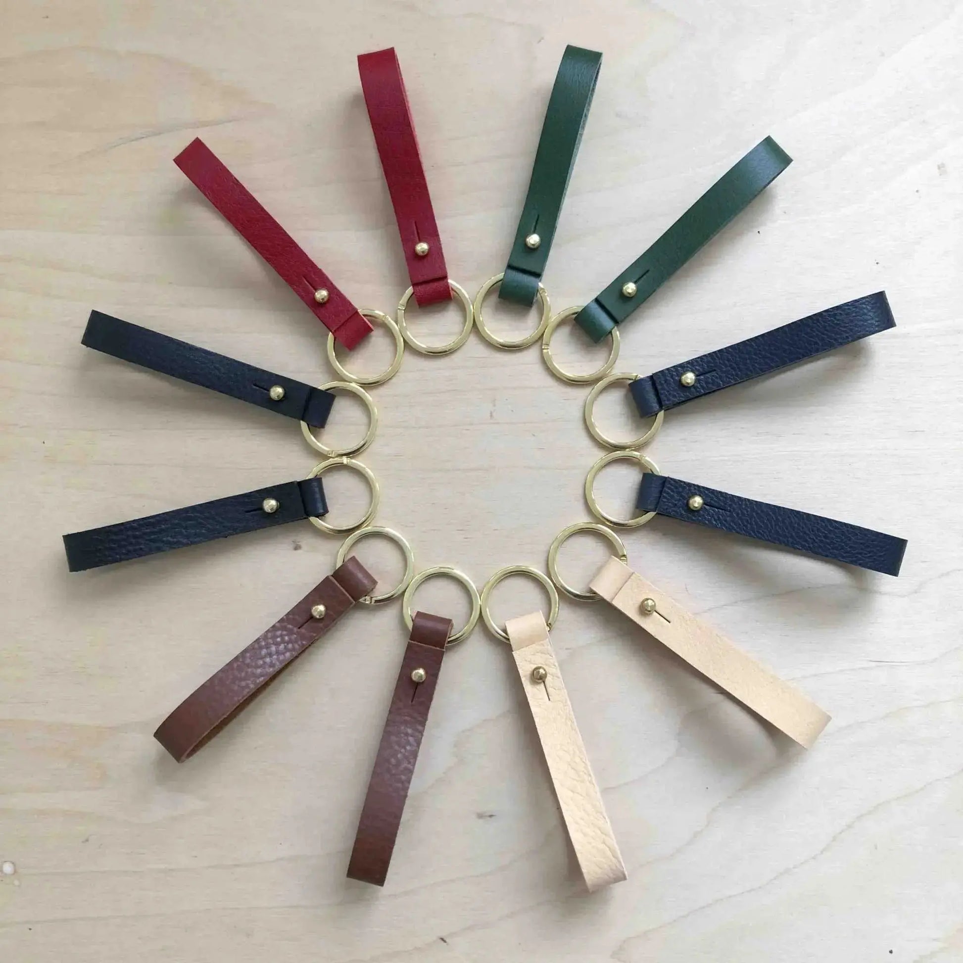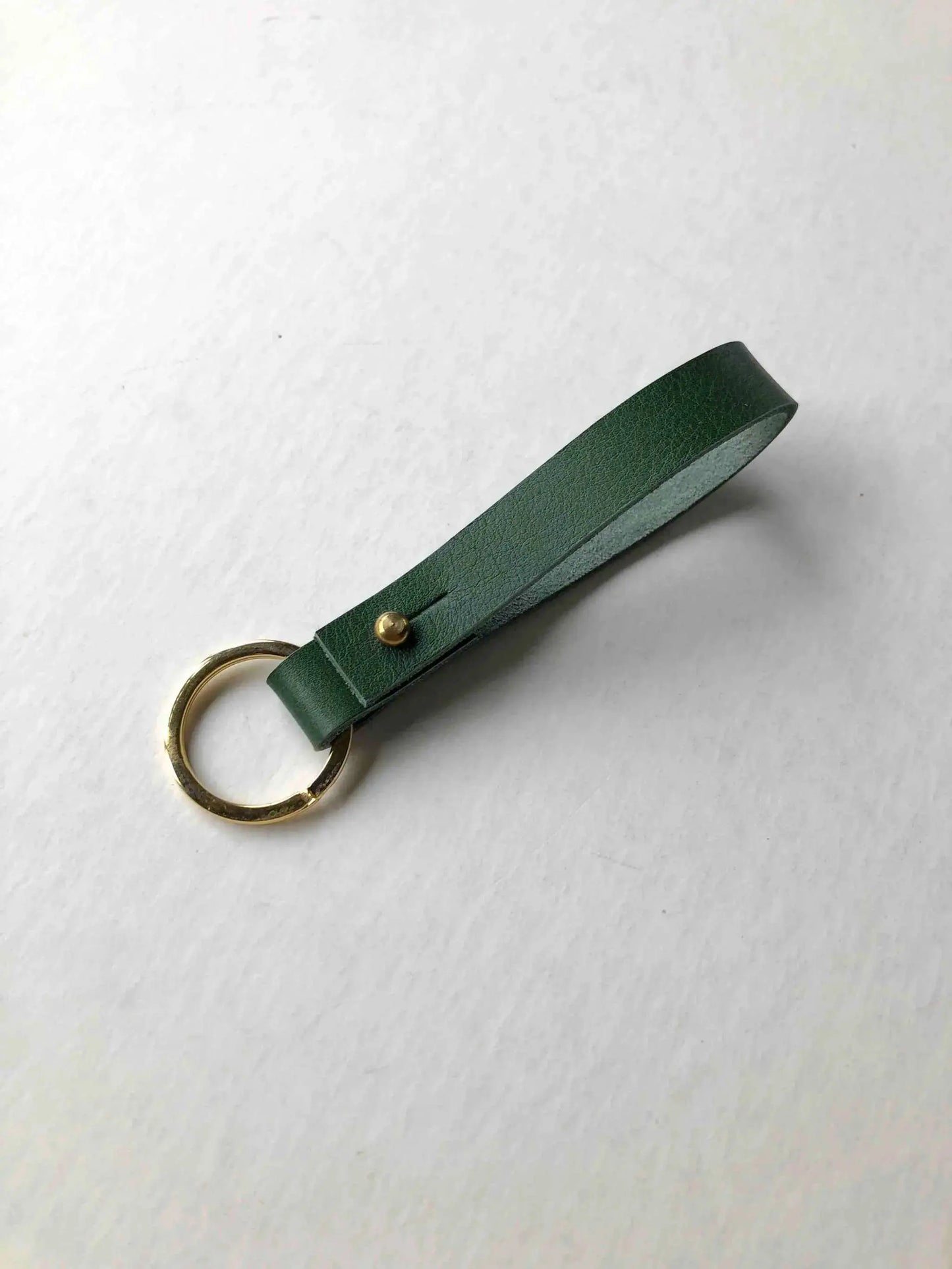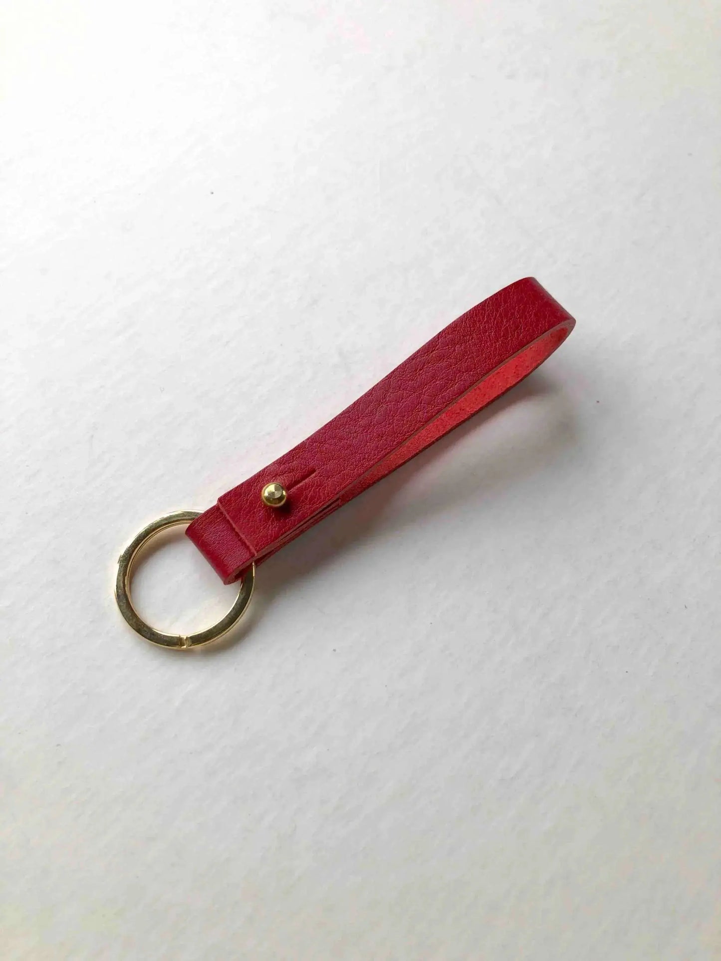 - Leather keyring available in black, tan brown, natural, scarlet red or forest green.