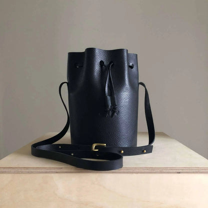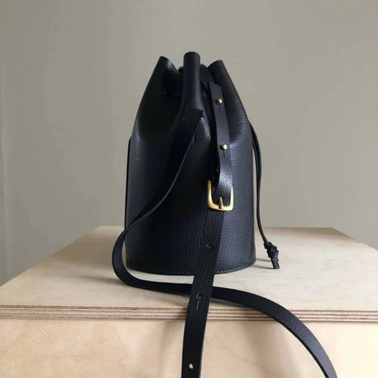 Cylinder Leather Bucket Bag in Black or Natural