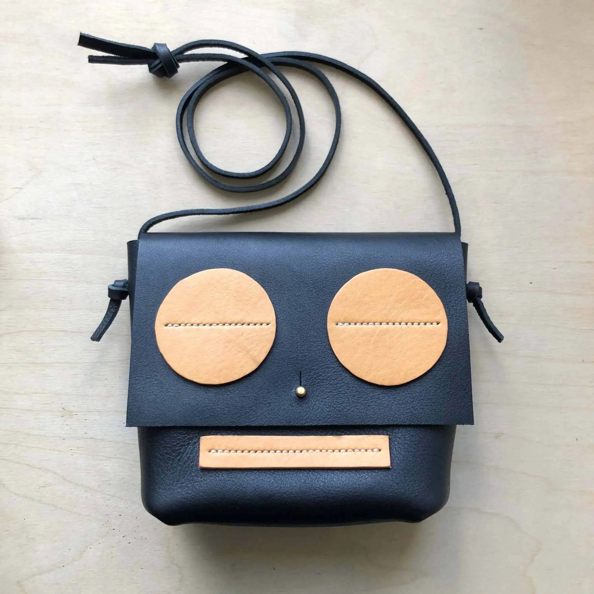 Playful design meets sustainable minimalism in our Little Robot Crossbody Bag. Handcrafted in the UK from sustainably sourced vegetable-tanned leather, this charming accessory holds small treasures for kids or essentials for adults. Our compact leather bag features a brass press stud for easy access and a secure slot mechanism. Its rich texture and natural finish showcase British leather craftsmanship, making it an original and timeless statement piece for all ages.