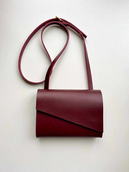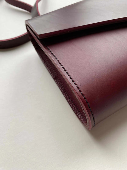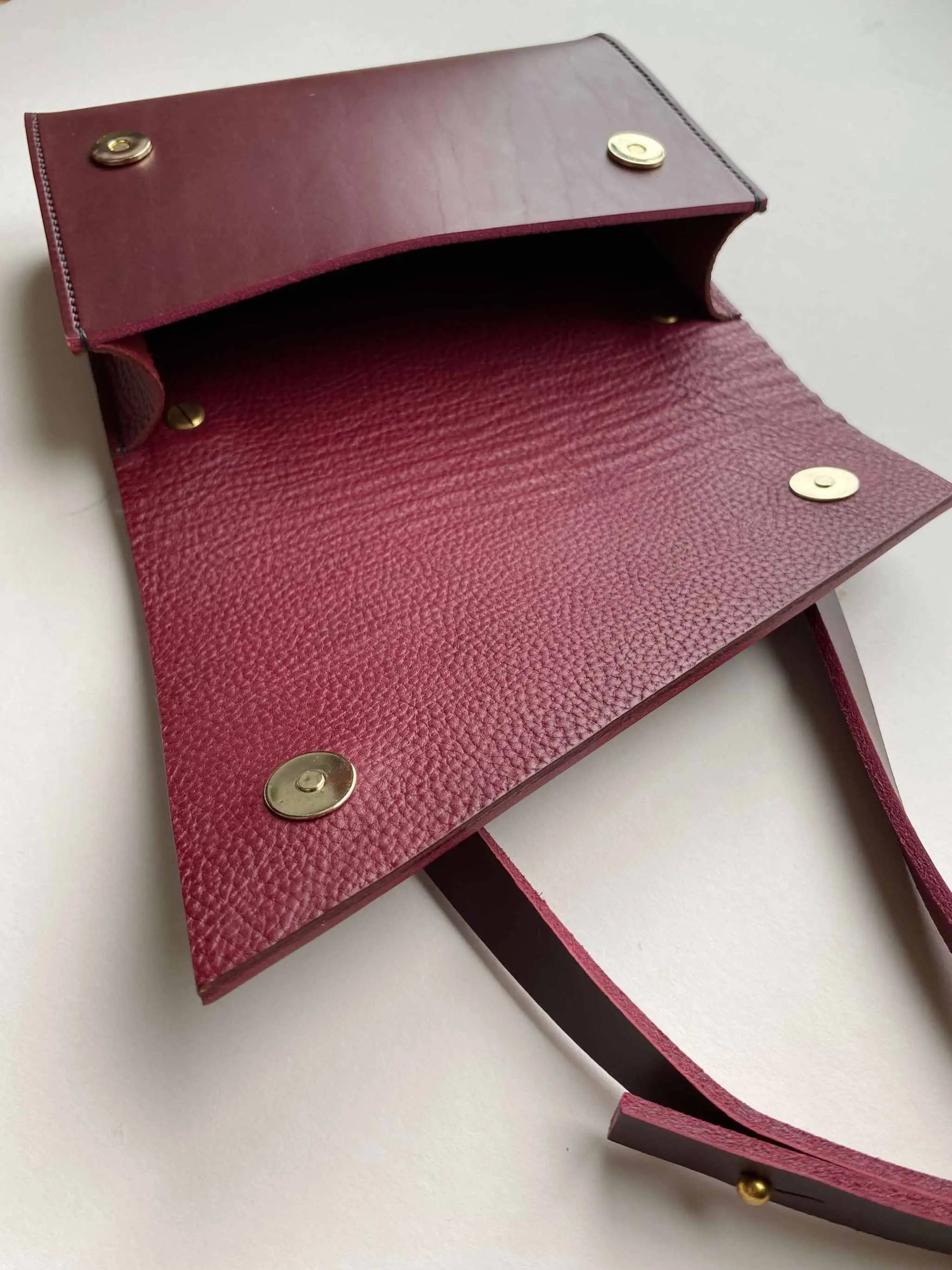 Rich wine red burgundy smooth outer leather crossbody bag.