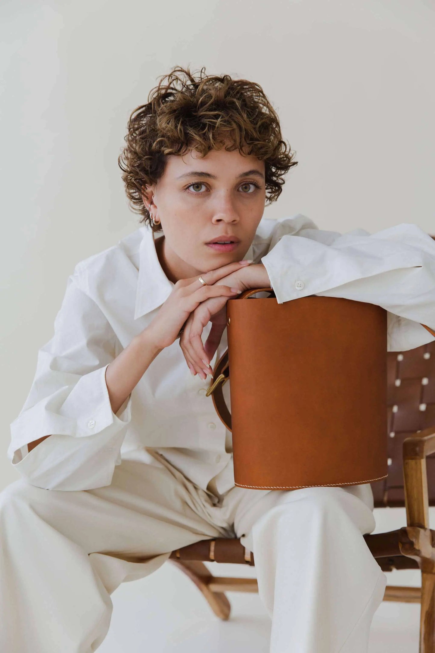 Whether you’re exploring local markets or taking a day trip, the leather bucket bag is a practical companion for carefree weekends.