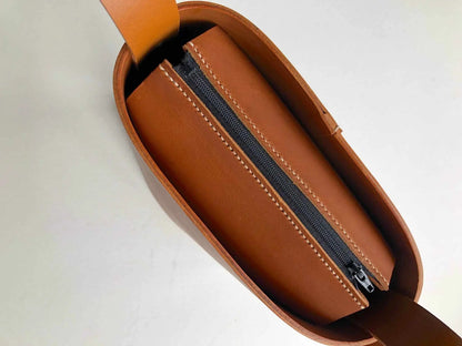 The Oval Midi Leather Bag by CARV is the epitome of understated luxury, meticulously crafted in the UK by skilled British artisans. Made from sustainable vegetable-tanned leather, this timeless shoulder bag effortlessly marries style with conscience. Its rich tan hue evokes warmth and versatility, making it the perfect accessory for every occasion.