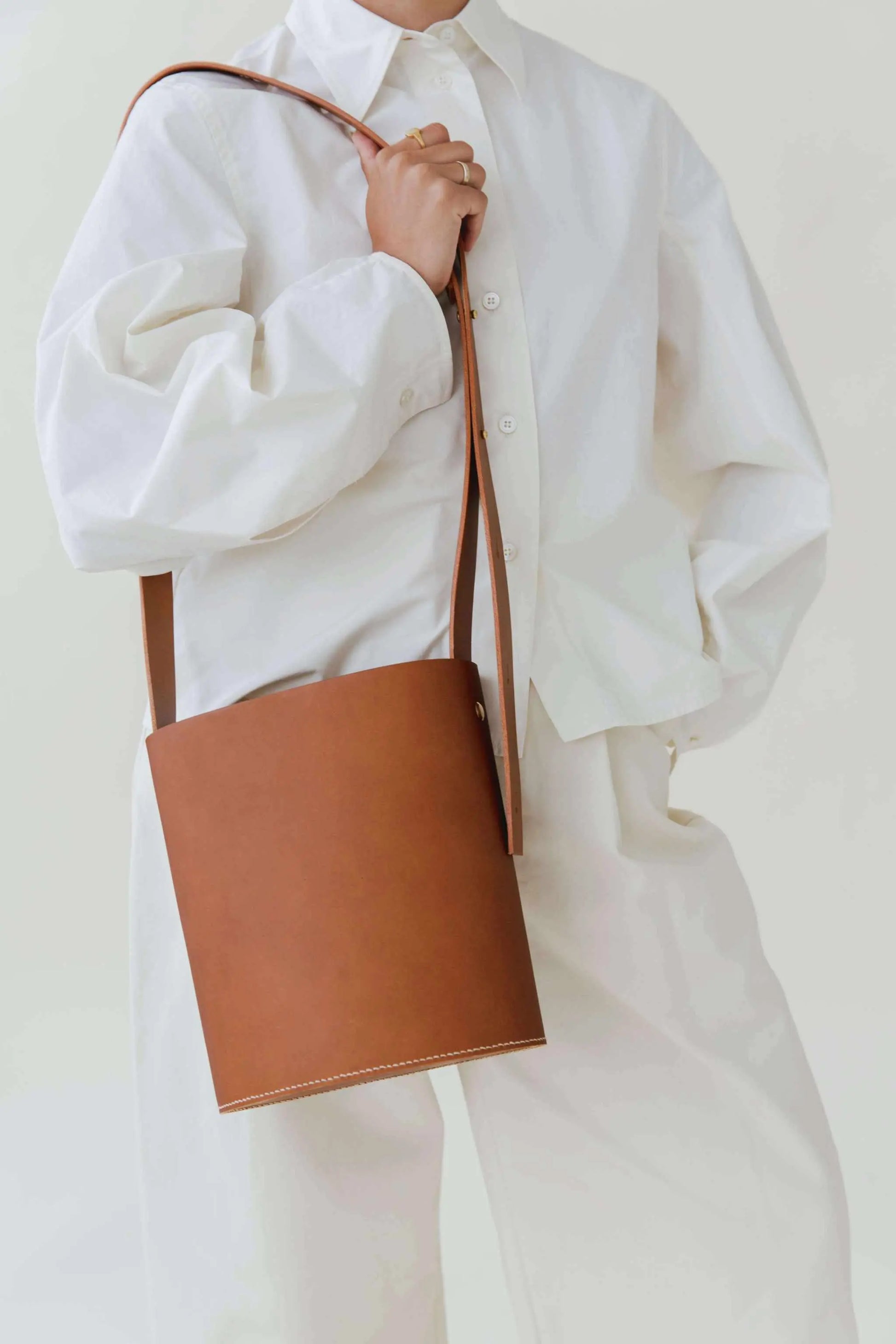 When styling a leather bucket bag, the piece itself plays a critical role. Here’s what to consider when selecting the perfect one: