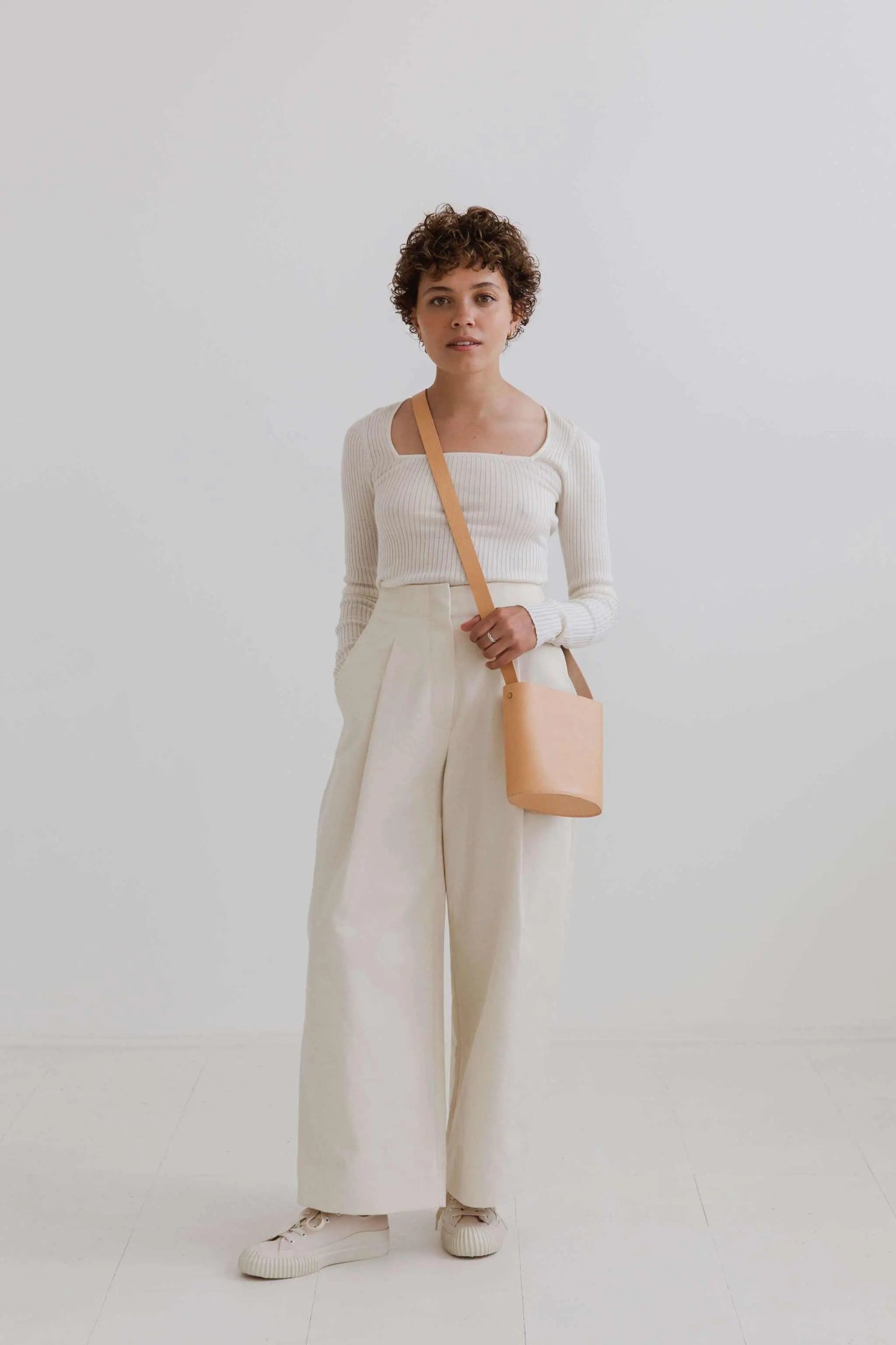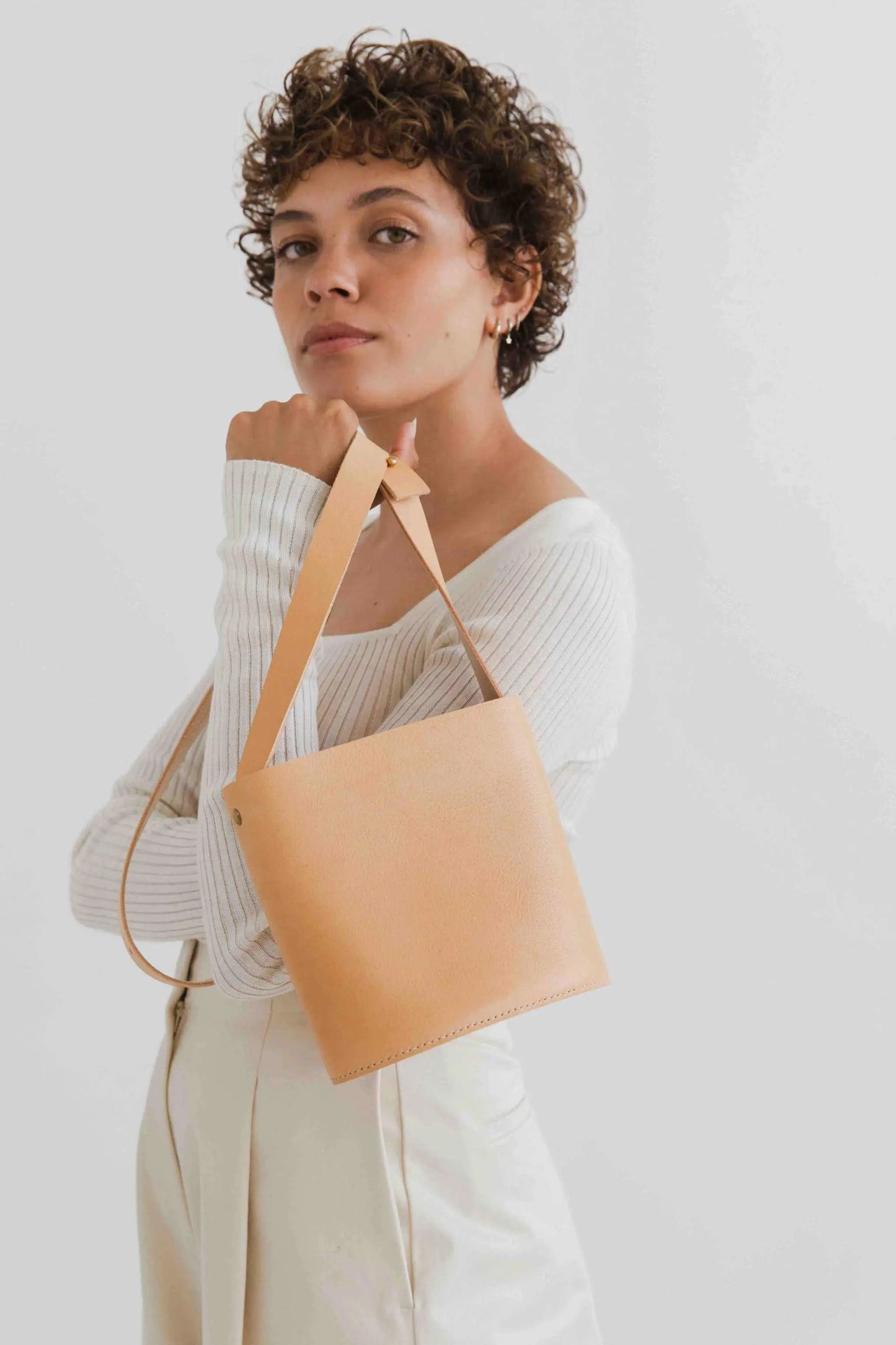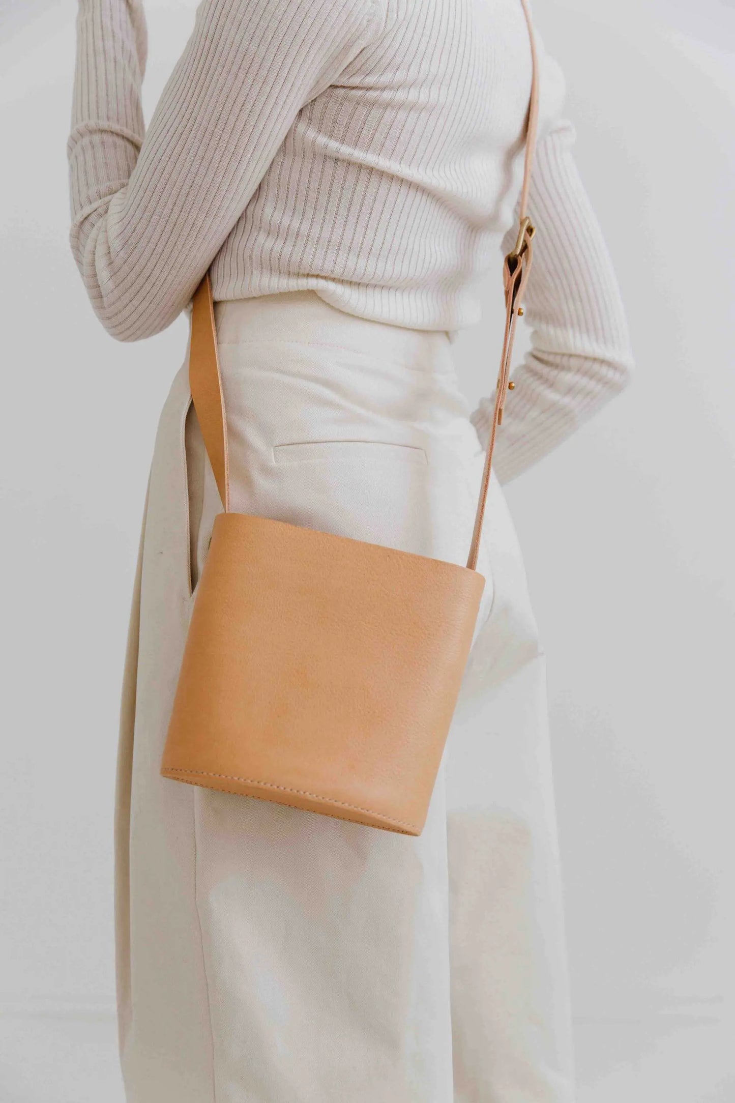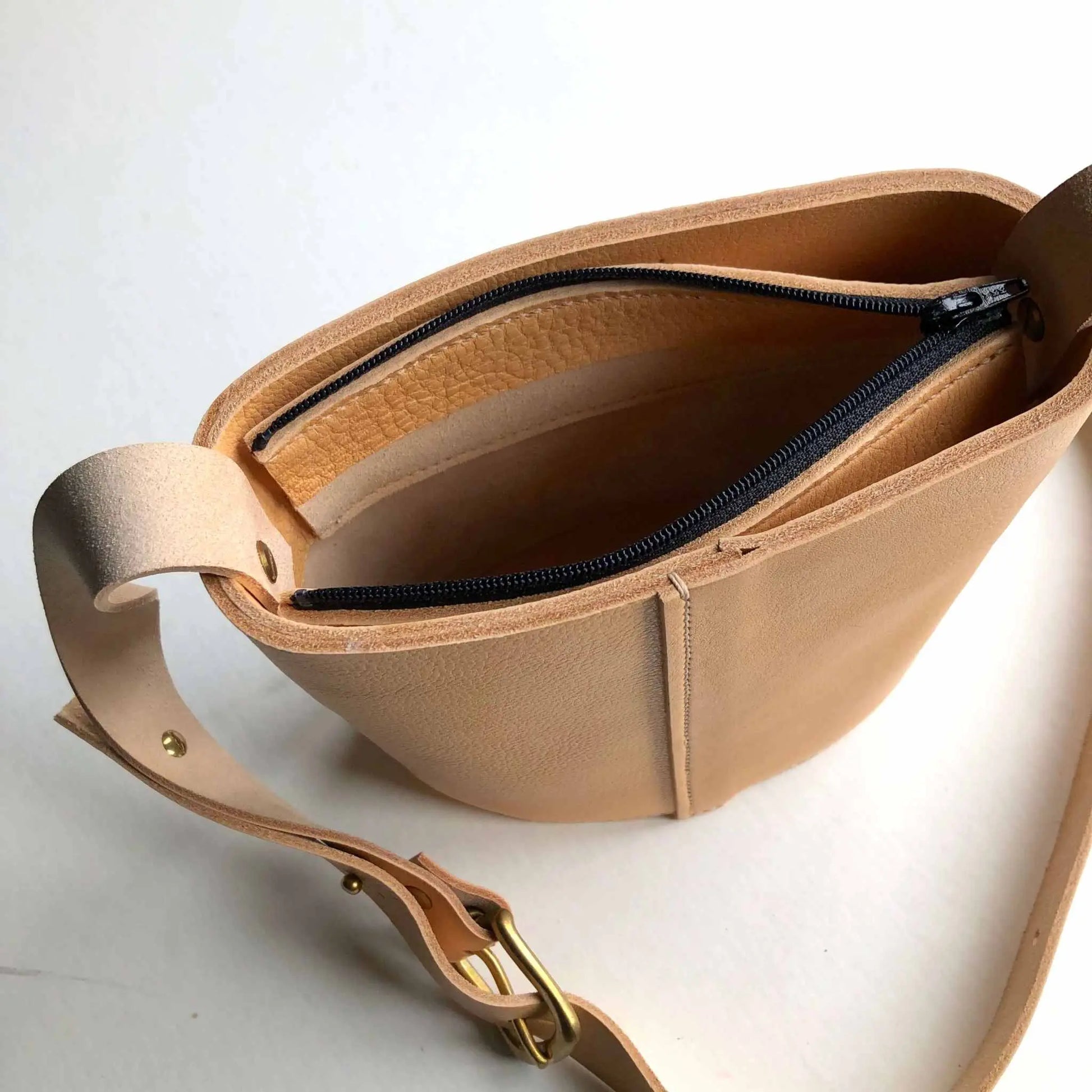 Read Becky's storyOur Artisan, Becky, crafts each of our cross body leather bags in the UK studio on the Devon Cornwall border. Inspired by nature, Becky uses natural vegetable tanned leather and clean minimalist styling.