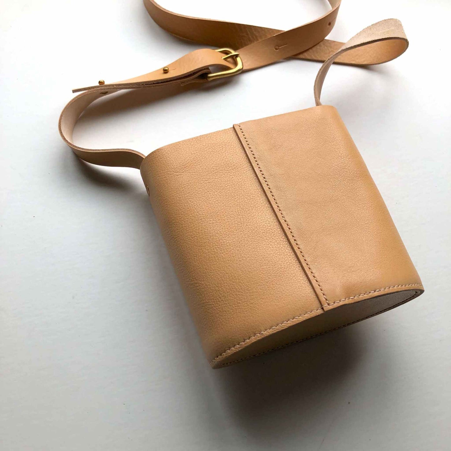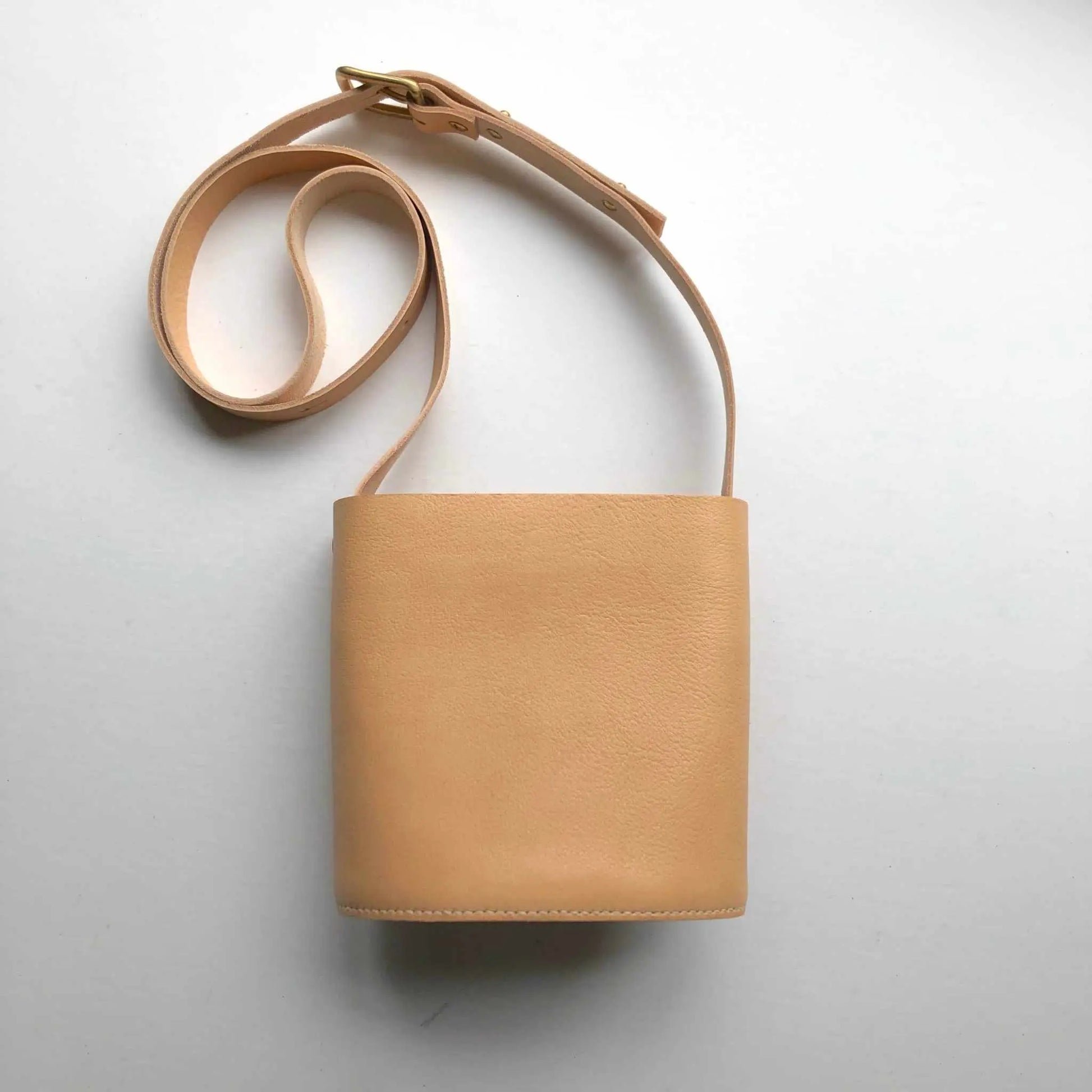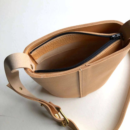 Leather crossbody bag in natural full grain leather.