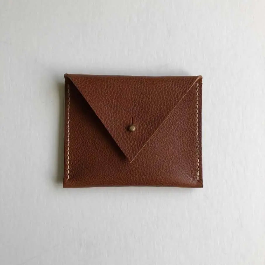 The Drifter Mini Leather Coin Purse by CARV captures the beauty of minimalist design and the heritage of British hand craft. Made in the UK from sustainably sourced vegetable-tanned leather and designed for those who value understated luxury, the coin purse combines function and form. Its compact size offers secure storage for loose coins, folded banknotes, and the essential cards you need on the go. The clean triangle flap, with a sleek brass press stud closure, showcases a striking geometric silhouette.
