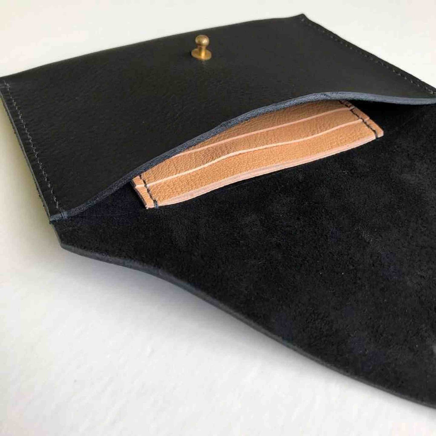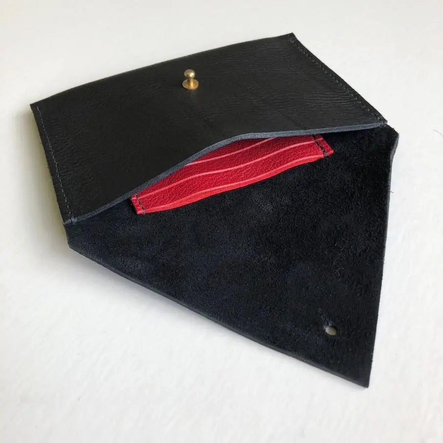 Choose from a black, red, burgundy or natural coloured leather card holder inside.