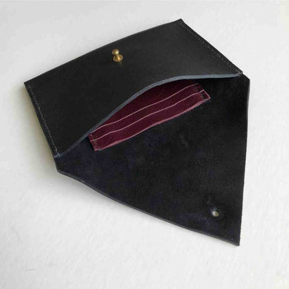 The Drifter British made leather purse is a statement of refined simplicity, with a striking triangle flap secured by a brass press stud closure. Inside, thoughtful design ensures it meets your everyday needs, with two card slots and ample space for folded banknotes and coins.